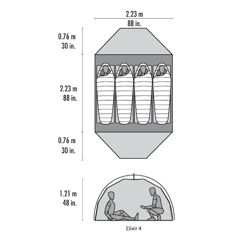 With all the features you expect from MSR, the freestanding Elixir 4 tent offers campers and backpackers an extremely liveable backpacking tent at a great value. The tent design provides plenty of headroom and space for three full-size adults and their mats, two large doors for easy entry, and new larger vestibules with 35% more storage space. Balancing breathable mesh fabric with solid canopy fabric, the 3-season Elixir 4 tent provides ventilation, warmth and privacy, while the included footprint offers multiple setup options, including a freestanding Fast & Light pitch with rainfly.