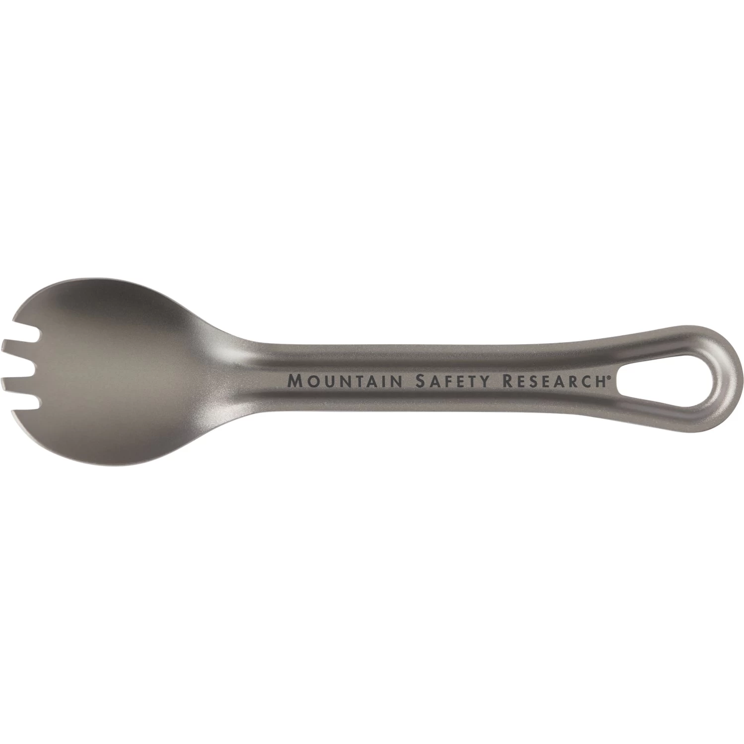 The MSR Titan Spork is a lightweight, durable camping spork that is constructed from titanium and is nice and long so you can scrape out the last remnants of your packet meal.