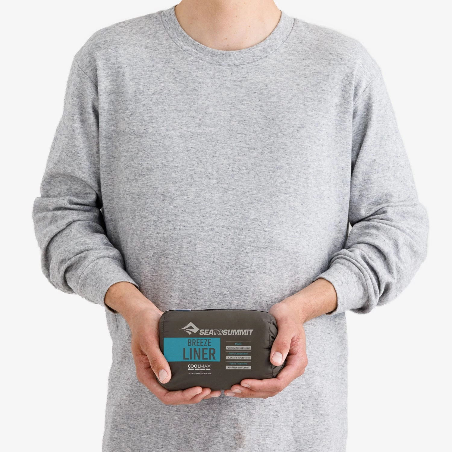 The Sea to Summit Breeze Liner with Coolmax® Poly Blend provides effective temperature regulation for comfort and peace of mind in the outdoors. Featuring a drawcord and weight-efficient shape, the Breeze Liner offers versatility to suit a range of climates and conditions. Available in two different lengths, regular and compact.