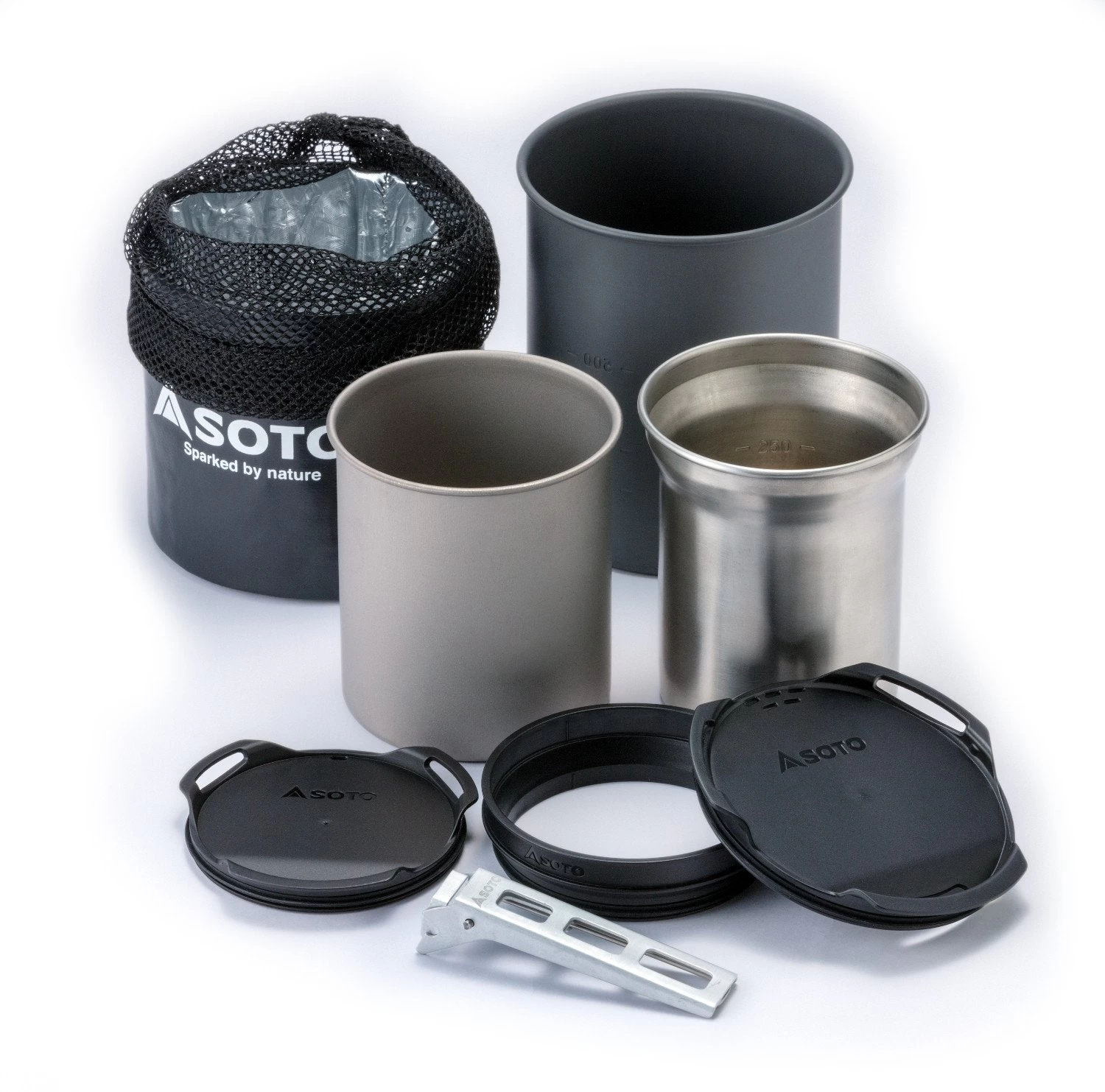 The SOTO Thermostack Cook Set Combo is the perfect solution for lightweight backpacking. Cups, pots and various accessories to make cooking outside easy and efficient for the weight/packability conscious.